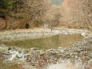 水が増えた割に切れるような冷たい雨、しかも濁りがありません。 春先に、こういう雨の時は、山の上は、多分ミゾレか雪でしょう。