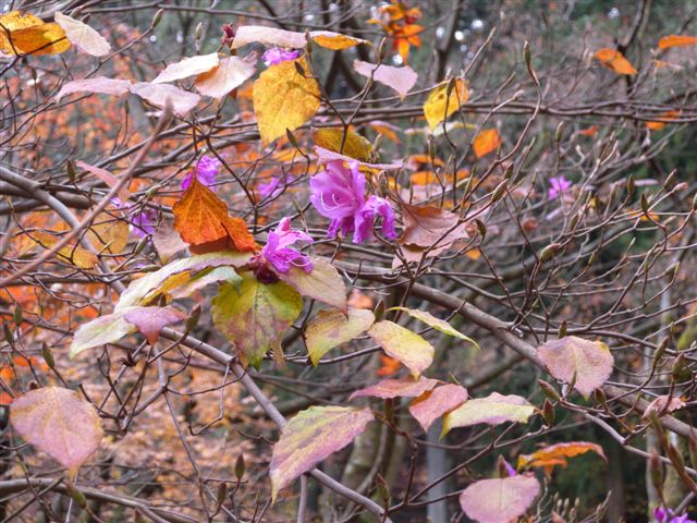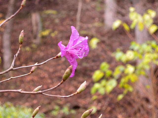昨日は狂犬集団の話だったが、今日は、チョット可愛らしく、季節外れの花便り。 5月に咲く、ミツバツツジが咲きました。 こんな寒い日に咲く事もないだろうに、今朝の気温は2℃だよ。 ただでさえ短い花の命が、幾日もつかナ〜。