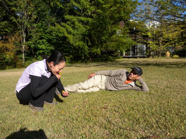 他人の別荘の庭で、疲れ休めのゴロ寝。