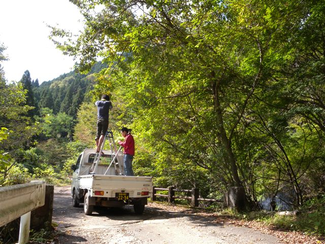 何でこんなとこに・・、と思いましたが、ここなら歩けない人でもキノコ採りが出来ます。