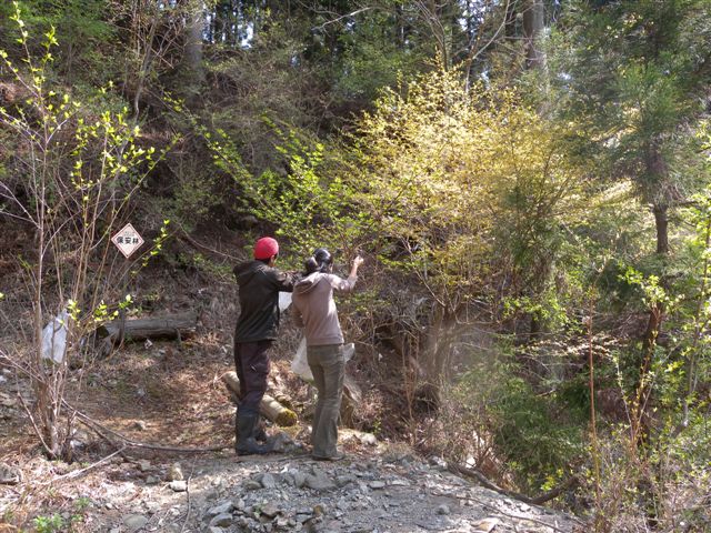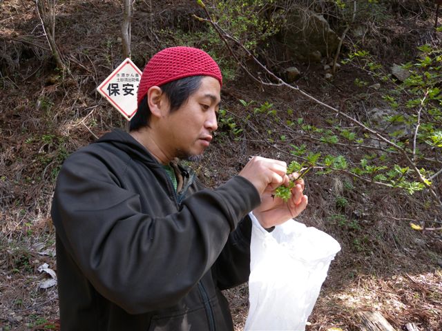 書かなきゃ、書かなきゃ・・と思いながら2週間たってしまった。 5月にならないうちにと、4月の〆。 そろそろ連休に入ると言うのに、宿泊予約票を見ては溜息をついてます。 地震余波が丹沢まで届き、まだ続いているのにはビックリでガックリです。 まあ、しかし、ナンだな。 落ち込んでいても仕方ないので、緑の空気を腹いっぱい吸い込むために、昨日は新緑の山を歩きました。 ・・と言っても、遊びで歩いたのではありません。 お仕事です。本当です。 ただし、歩きながら、「オッ!タラの芽だ」「オッ!採りごろのサンショ」と、周りの人が話すお仕事話しは耳を筒抜け、美味しそうな春の味覚に目がいく一日でした。 そこで、今日は早速サンショ摘みに行きました。 いつもの春は一人で摘むのですが、今日は娘と、そのBF二人が助っ人・・、2時間でコンビニの袋いっぱいになりました。 ただし、煮たら一掴みになってしまいます。 食べるのは大好きですが、採るのは苦手、肩は凝るし、目は疲れるし。