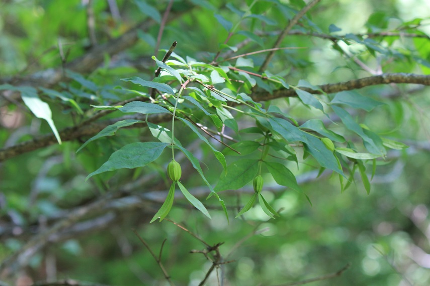 ところで、熊の爪痕の近くに、パックリ口をあけたアケビ。