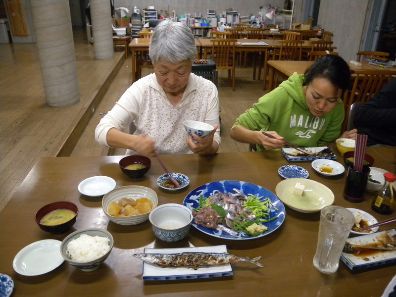 女房とヨっちゃんが、刺身にタタキに塩焼きと、今日はサンマづくし。
