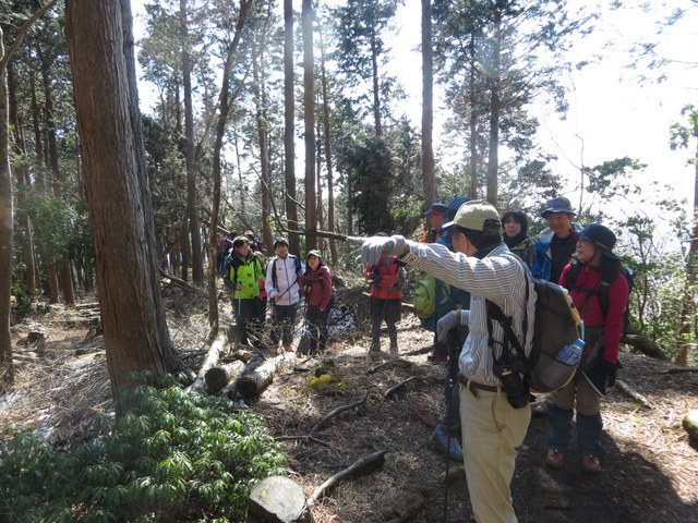 三ノ塔山頂で、神奈川県職員から丹沢の土壌流出防止、緑化と治山事業の解説を聞きました。 みんな一応・・真剣に聞いていたけど、頭に入ったかな〜。