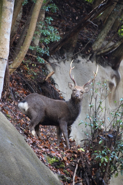 29日 起床6:00、就寝は21:30なので睡眠は十分のはず。 朝の散歩6:30。 体操の前に校長が森の斜面に♂シカ発見。 「シカに会いたい。シカに会いたい。」と言ってた子供達。 息をのむ感動の対面だった。
