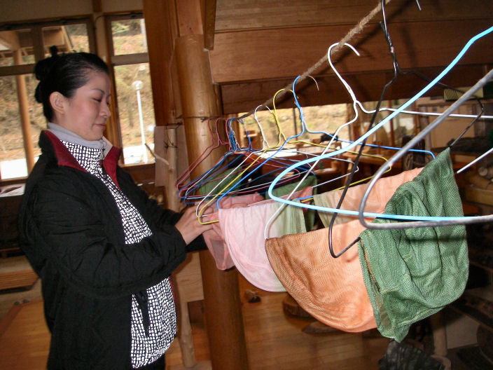 リリースネットを好みの色に染色、乾燥させます。(通称、パンツ干し) |