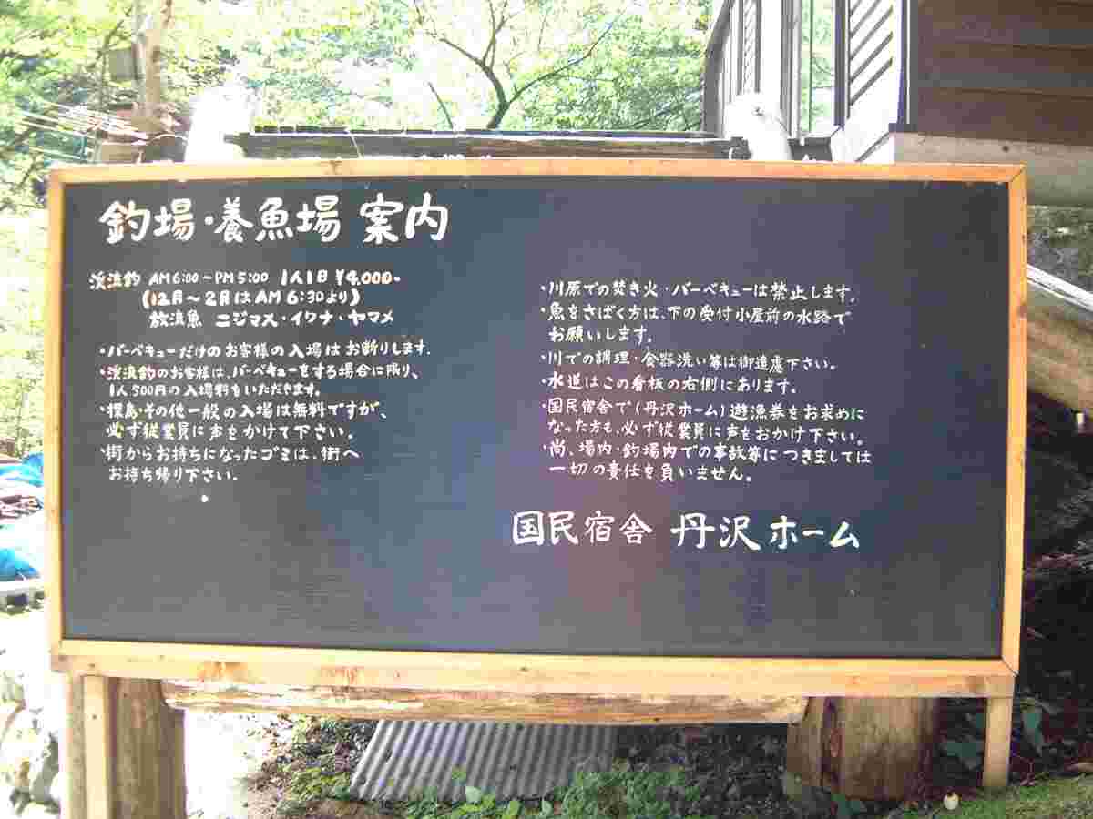 養魚場管理棟前に立っている看板です。