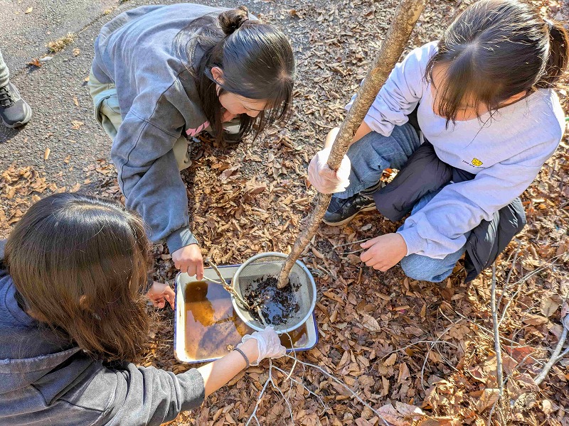 森の学校では、野生生物の生態や役割を学ぶことで自然の仕組みを知ります。