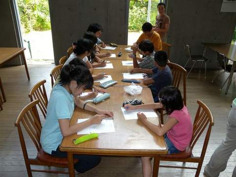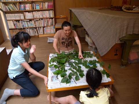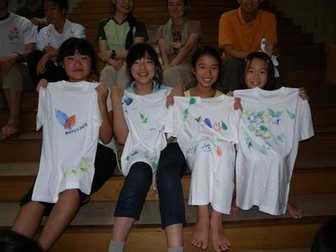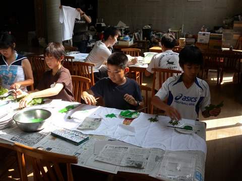 学習のため採取した葉っぱを使って、Tシャツに葉拓。 みんな一所懸命です。 まず、女の子。僕達のも見て。僕たちも・・と、学生やお父さん。 ま、そこそこ「センスあり」の作品でした。 自由時間は一番楽しい時間です。 校長のおじさん、水が冷たい!。 バッカだな〜、水が冷たいのは当たり前だろ、水が温かだったら、それはお湯って言うんだ。 校長、もう少し説明の仕方が・・。ない。 おむすびは私達(女の子)が握りました。 だから、大きさも形もバ〜ラバラ、でも美味しかった。 お魚は僕達(男の子)がさばいて焼きました。 当然、美味しかった。 みんなで遊びまわった後は、恒例のテスト。 今回は葉っぱを見て樹木の名前を当てるテストもありました。 これは結構楽しいテストだったね。 感想文に、「4日間の森の学校で、一番つまんなかった学習は、植生調査」と書いた子がいました。 でも、その後に「つまんないけど、大切な事だからやる」と書いてました。 ナイトツアーでは、仔シカなど4頭の野生シカも見ました。 どんな事でも、みんなが力を合わせて、丹沢の自然を守っていきましょう。 |