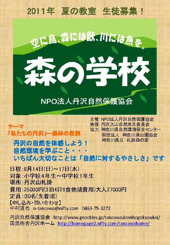 今年のテ〜マ 「私たちの丹沢」―森林の役割 8月14日〜17日