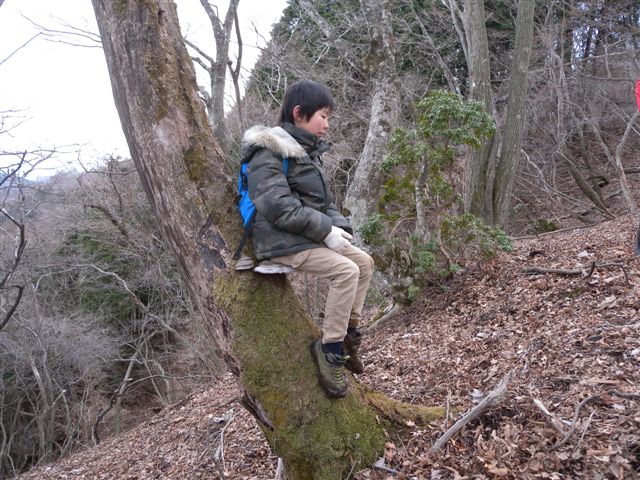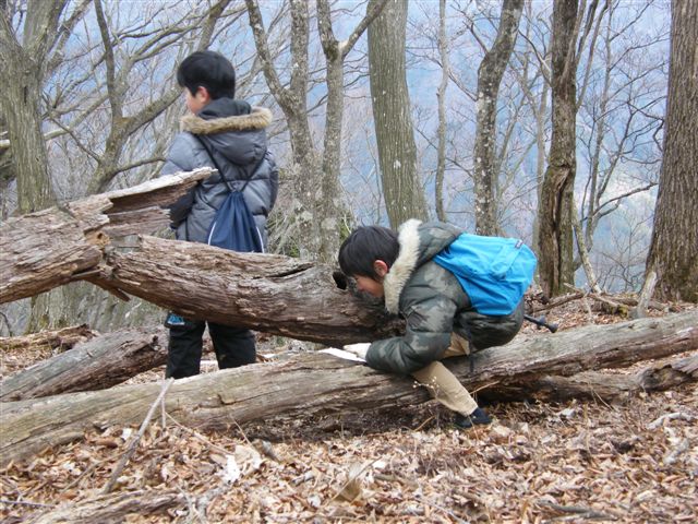 尾根の途中で、長澤先生が、大きくて深い穴を見つけました。