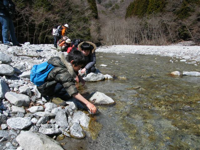 東丹沢と違って、川原の石も砂も真っ白に、みんな驚いていました。