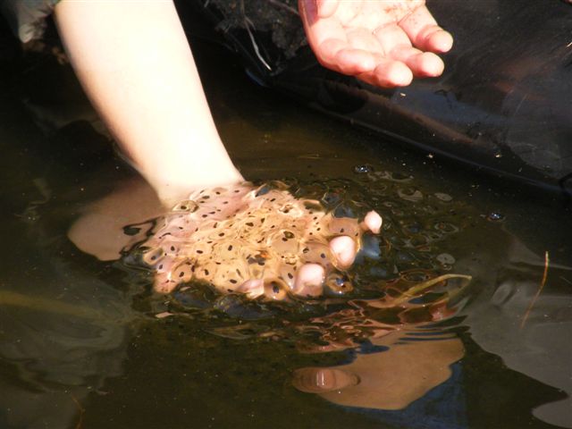 野外施設では、カエルの卵に触りました。
