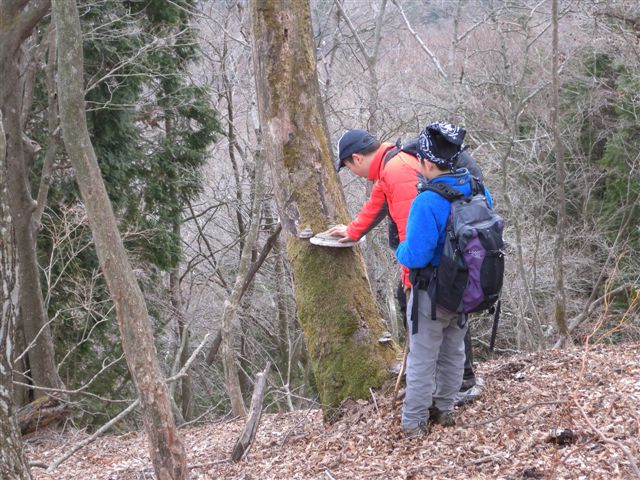 急いでお弁当を食べて、丹沢自然保護協会が広葉樹を植えている植樹地の説明も簡単にして、ヨモギ尾根を下りました。
