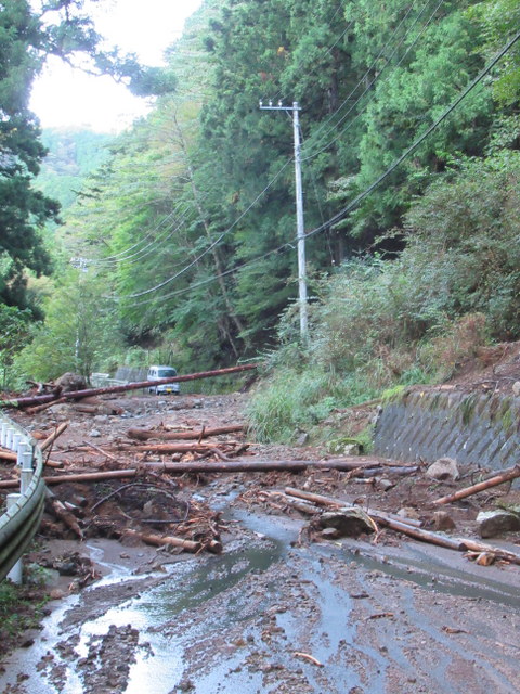 持って行ったカメラで道路や山腹崩壊の現況報告。