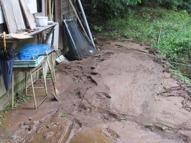 これまでは大雨でも山の中ゆえ安心していた川の水が今回は泥濁り。