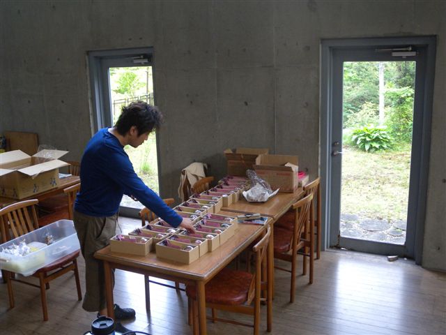今日は、私がお仕事を終えて、少し早めに戻ってくると、娘と婿さんが、結婚式の引き出物の仕上げをしていました。 娘つづくりのお菓子セットです。 婿さんは、娘の言う事を良く聞いて働いています。 でも、いまから、あまり素直すぎると、時を待たずにケツに敷かれちゃうよ・・、オイラみたいに。 しかし、二人のお礼だからな・・、女房だけに任せてビール飲んでたら、何も言えなくなるよな・・、ま、自分達のお礼の気持ちだから、仕方ないか。