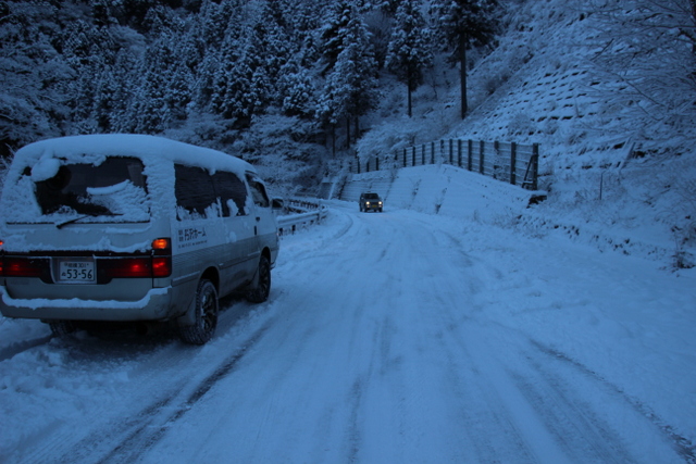 道路情報・他。 昨日の夕方に「県道・通行止」のお知らせ。 雪景色の朝。早々に道路パトが走っていました。 お金を掛けて遠くの山へ行かなくても、通勤電車圏の丹沢で、雪山体験しませんか。