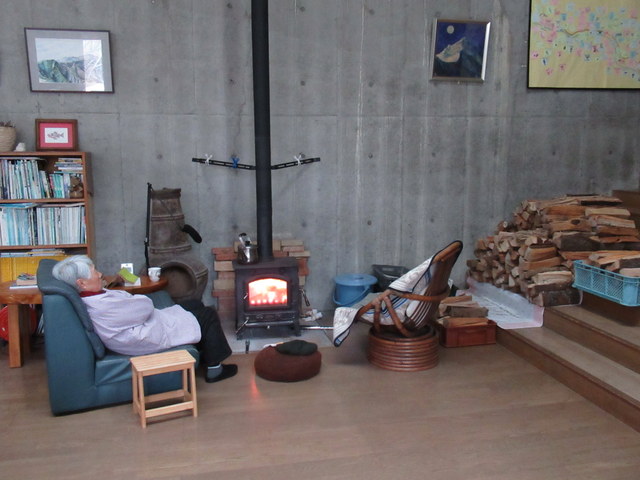 三ヶ日が終わり、やっとお正月。 養魚場へ行く前にチョイと振り返ったら・・ムサ公が「おはよう」・・と。 ストーブの上でチンチンとお湯が湧く音を聞きながらマッタリ。 さて、年賀状を読みながら書き残した年賀状を書こう。